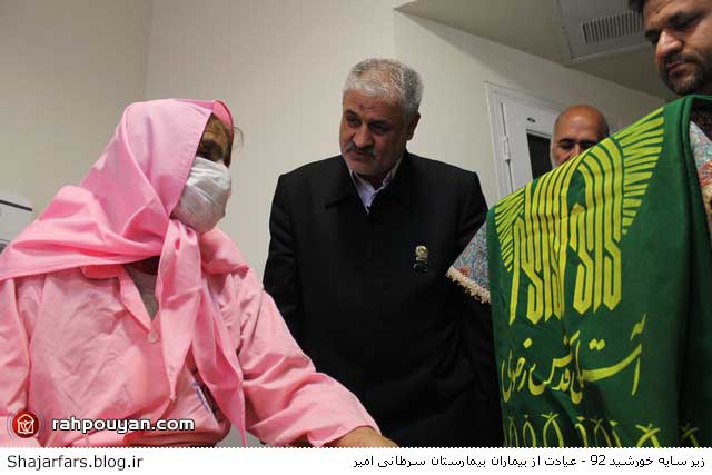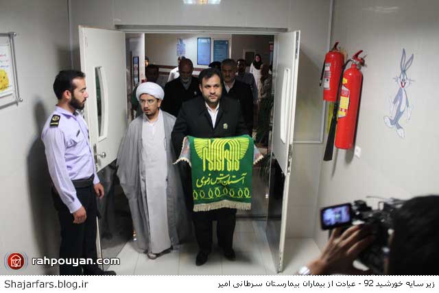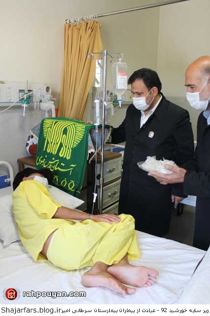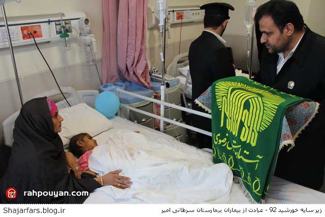 به گزارش ستاد اطلاع رسانی جشن های مردمی و معنوی زیر سایه خورشید خدام حرم رضوی با حضور در بیمارستان امیر شیراز و ضمن عیادت از بیماران و آروزی سلامتی بیماران با رسانه های جمعی به مصاحبه پرداختند.