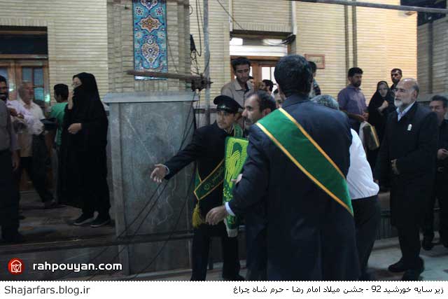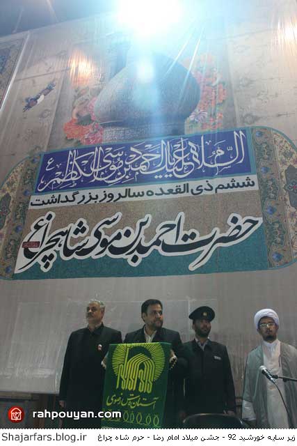 به گزارش ستاد اطلاع رسانی جشن های مردمی و معنوی زیر سایه خورشید خدام حرم رضوی با حضور در حرم مطهر احمد بن موسی ( ع ) برادر بزرگتر امام رضا ( ع) معروف به شاه چراغ ، به انتشار عطر رضوی با حضور مجاورین و زائرین این حرم شریف پرداختند و با مردم و مسدولین این حرم مطهر دیدار داشتند. .