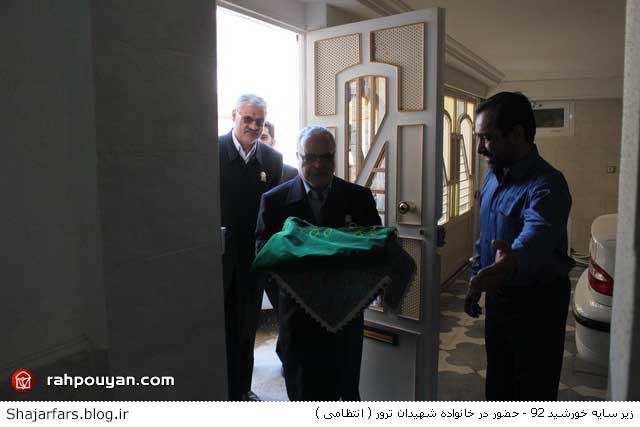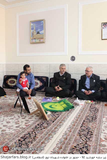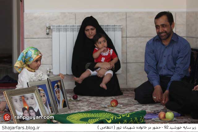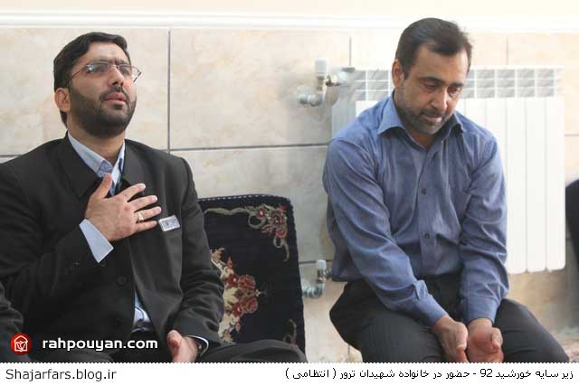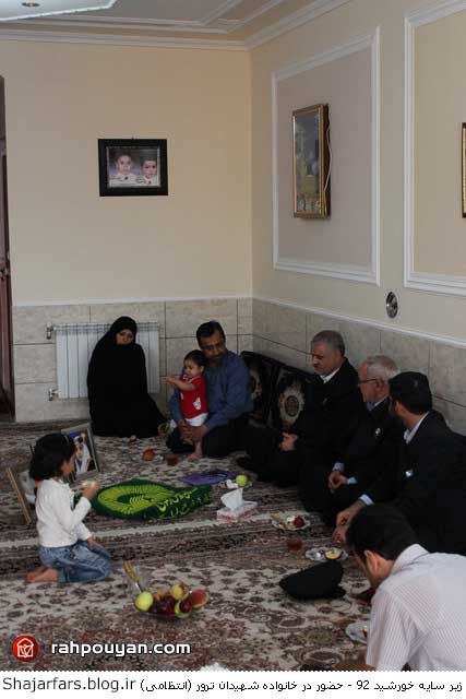 به گزارش ستاد اطلاع رسانی جشن های مردمی و معنوی زیر سایه خورشید خدام حرم رضوی با حضور در منزل این شهیدان ضمن قرائت فاتحه و با محکوم کردن حادثه تروریستی کانون فرهنگی رهپویان وصال در بهار 1387 برای این خانواده و دیگر خانواده شهدای این ترور طلب مغفرت نمودند ..